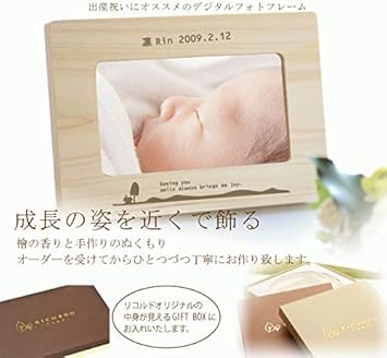 Amazon 名入れ 木製デジタルフォトフレーム ミニサイズ出産祝いタイプ 文字まで入ります 出産祝いギフトとして フォトフレーム 通販